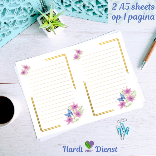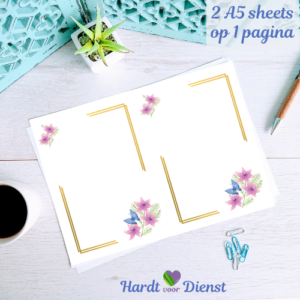 – A5 blanco en een A5 gelinieerde optie (2 pagina’s per vel).