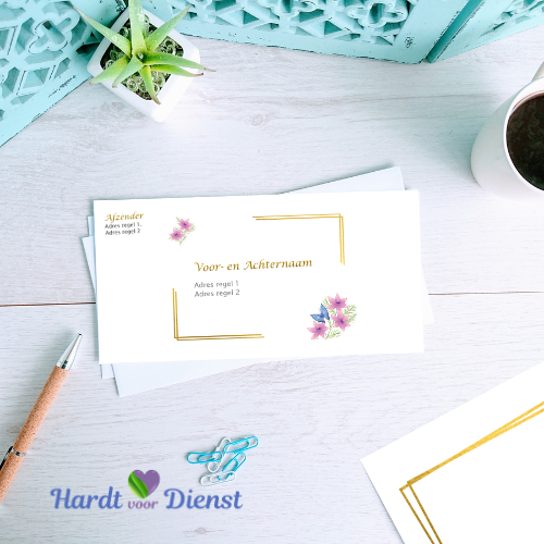 – C6 envelop sjabloon (goed voor A5 in 2 gevouwen) in Word. (Sjabloon is makkelijk in te vullen en lettertype is al voor u geselecteerd)