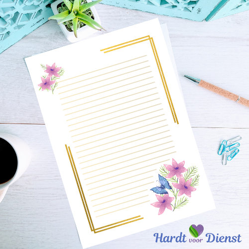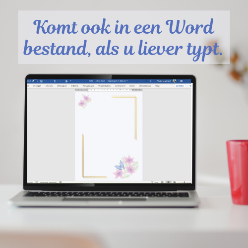 – Word document, voor als u liever uw brieven typt. (Tijdens het typen zal de afbeelding dof uitzien, maar als het document uitgeprint wordt, zal het in de mooie kleuren verschijnen.)